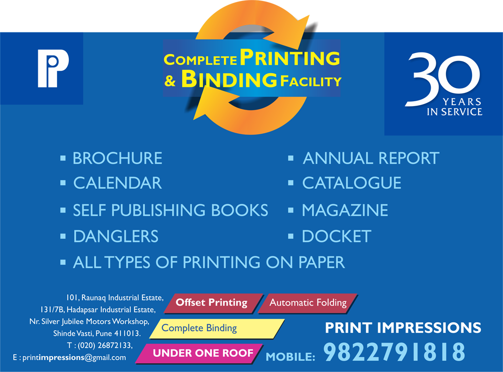 Printing technology has advanced by leaps and bounds. Printing, in Pune is in par with the best in the country. We at Print Impressions have been at the forefront, when it concerns integrating technology. Our Jobs have been appreciated and endorsed by our clients, enhancing our client base and the types of jobs entrusted to us. We have been in the industry for two generations and have achieved the balance between price and quality to the satisfaction of all our clients. Go through the jobs we have completed and our facilities and you will see that we are up to the challenge of delivering the goods for you!